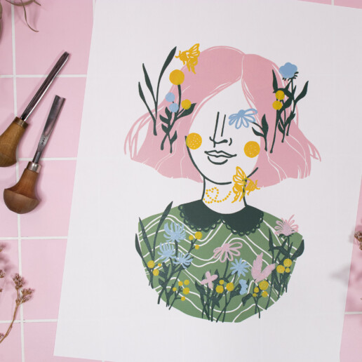 Auf meinem Instagram-Kanal @annahermsdorf teile ich seit 2018 meine Tipps und Tricks zum Drucken mit Linoleum. Dank meiner Videos über den Schnitz- und Druckvorgang konnte ich mir organisch eine große Community von über 125.000 Followern aufbauen.