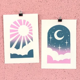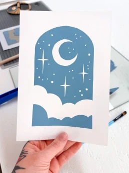 Er wird vielleicht nicht gleich beim ersten Mal perfekt sein – und genau das ist normal. Linoldruck ist ein handwerklicher Prozess, und jeder Druck bringt dich ein Stück weiter. Dein Druck wird trotzdem super aussehen, weil das Zusammenspiel aus Druckfarbe und Papier eine ganz eigene Magie erzeugt!