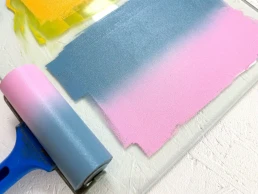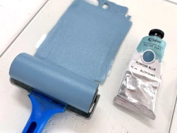 Verteile eine kleine Menge Farbe auf deiner Mischfläche und rolle sie gleichmäßig aus. Nutz die Farbe direkt aus der Tube oder misch dir deine Wunschfarbe an – mit den 5 Hauptfarben kannst du eine riesige Bandbreite an Farben mischen.