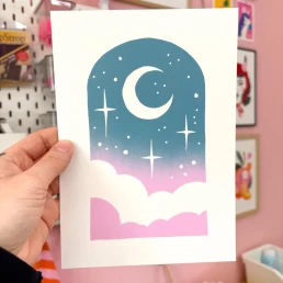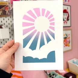 Anna Hermsdorf ist Linoldruck-Designerin aus Deutschland. Sie gestaltet farbenfrohe Linoldrucke und vermittelt moderne Linoldruck-Techniken online und in Workshops.