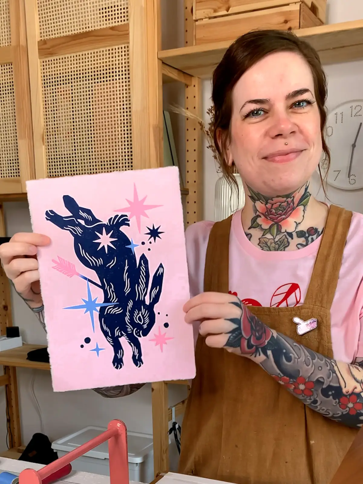 Hey, ich bin Anna Hermsdorf. Ich komme ursprünglich aus dem digitalen Zeichnen und habe nach einer Drucktechnik gesucht, die mir dieselbe gestalterische Freiheit gibt. Klassischer Linoldruck war mir dafür oft zu reduziert – erst die Arbeit mit mehreren Druckplatten und gezielter Farbplanung hat das verändert.
